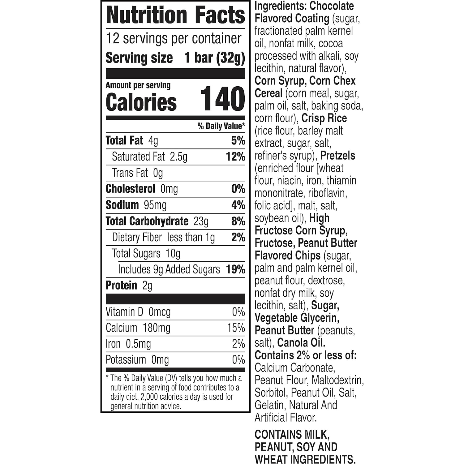 • CONTAINS: One 13.56 Value Pack of Chex Mix Peanut Butter Chocolate Flavored Treat Bars; Contains 12 bars